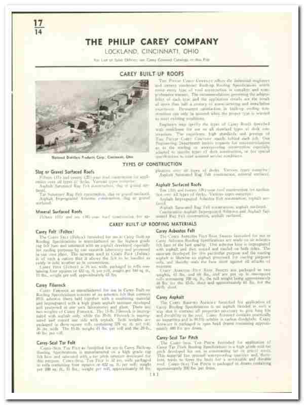 Original 1941 roofing trade vintage catalog for the PHILIP CAREY COMPANY. Main office and plant was located at Lockland, Cincinnati, OH.