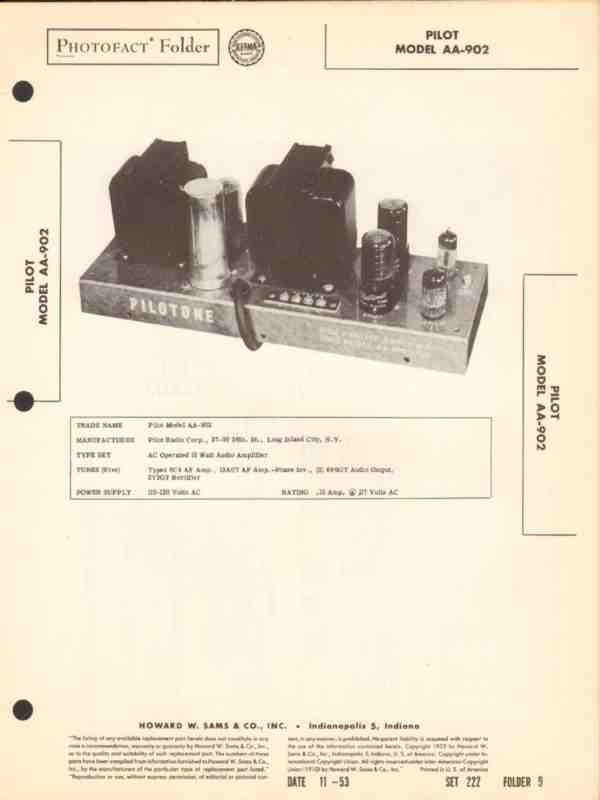 pilot model aa-902 10 watt audio amplifier sams photofact manual