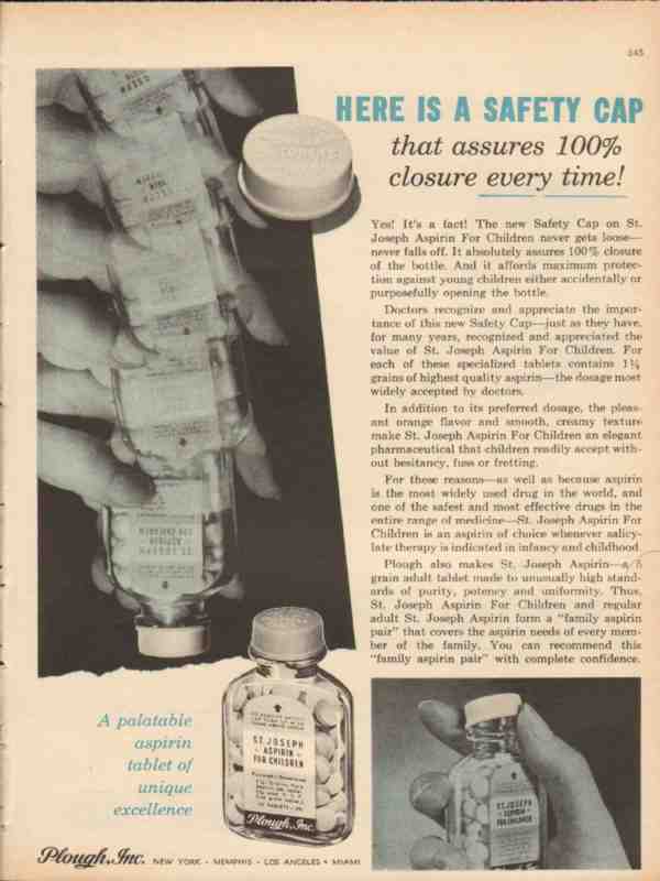 plough inc 1959 st joseph aspirin child safety cap medical vintage ad