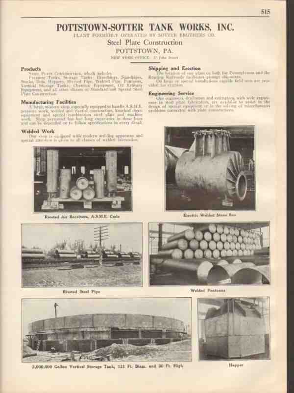 Pottstown-Sotter Tank Works Inc 1931 Vintage Catalog Steel Plate