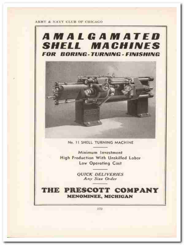prescott company 1943 amalgamated shell machine ww2 wartime vintage ad