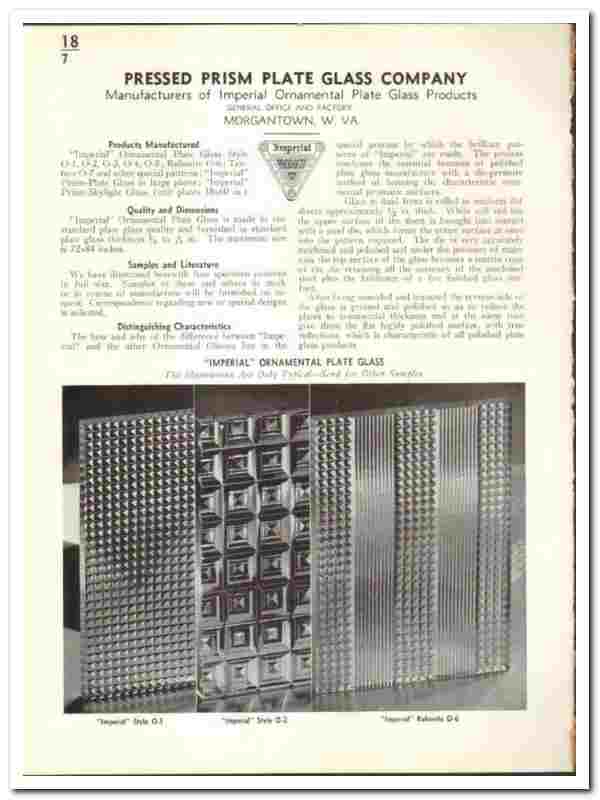 Pressed Prism Plate Glass Company 1942 vintage catalog Imperial