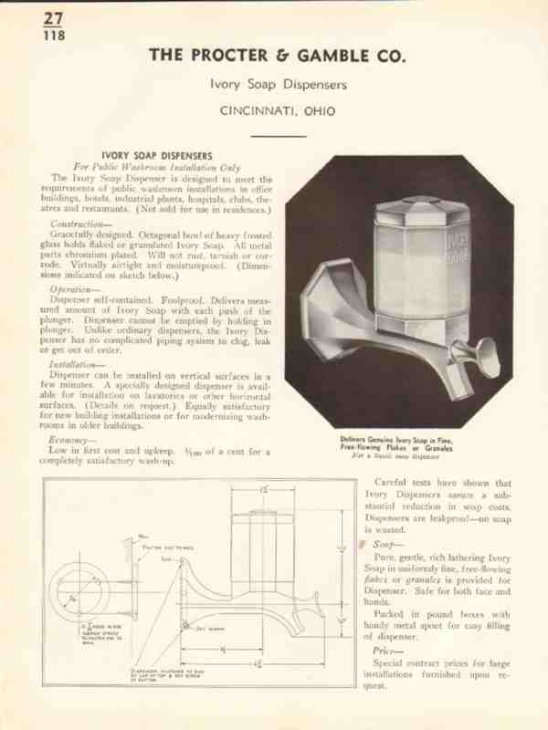 Procter Gamble Company 1938 Vintage Catalog Ivory Soap Dispenser Wall