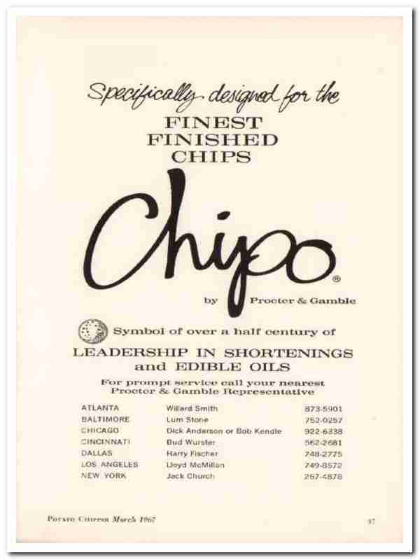 procter gamble company 1967 chipo finest finished chips vintage ad