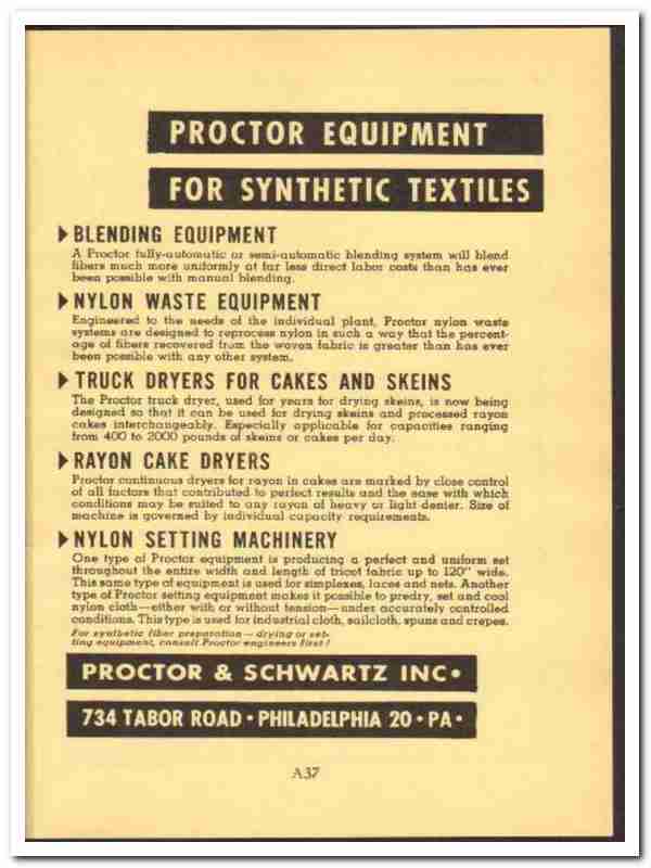 Proctor Schwartz Inc 1952 vintage textile ad synthetic equipment nylon