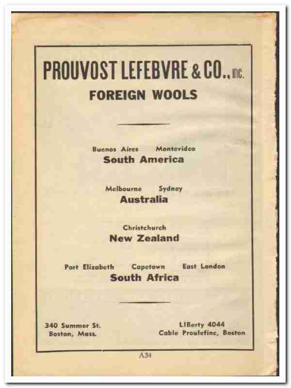 Original 1948 textile trade vintage ad for PROUVOST LEFEBVRE & COMPANY, INC. Main office and plant was located at 340 Summer Street, Boston, MA.