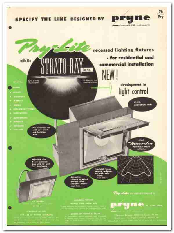 Pryne Company 1954 Vintage Catalog Lighting Pry-Lite Strato-Ray Lens