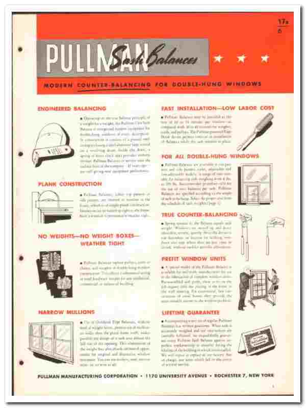 Manufacturers of Pullman Sash Balances. 'Modern Counter-Balancing for Double-Hung Windows'.