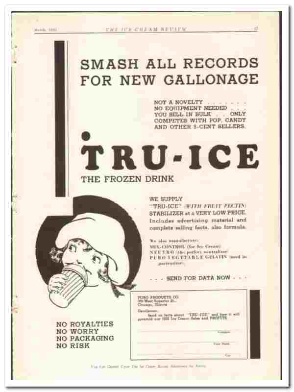 Puro Products Company 1935 vintage ice cream ad TRU-ICE frozen drink