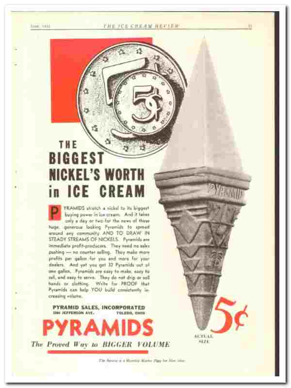 Pyramid Sales Inc 1935 vintage ice cream ad cones Biggest Looking