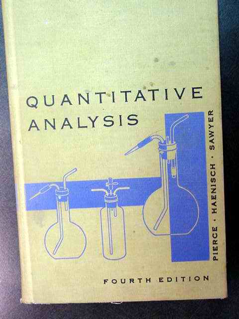 Hard covered book titled QUANTITATIVE ANALYSIS by Willis Pierce, Donald Sawyer and Edward Haenisch, 1962, Fourth Edition, 497 pages.