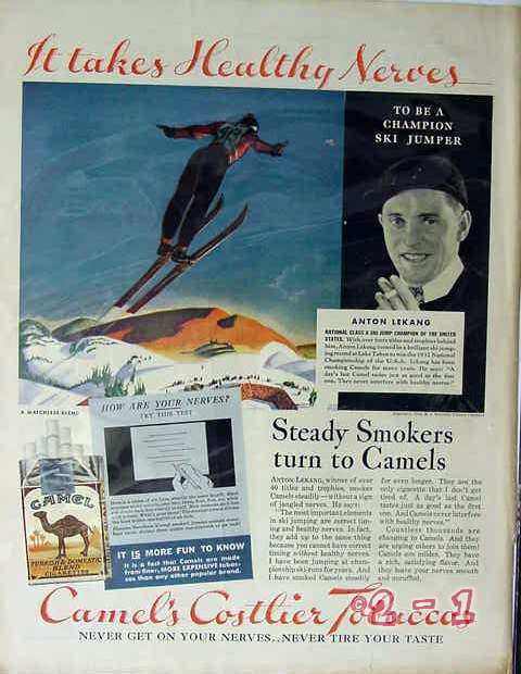 r j reynolds tobacco 1934 ski anton lekang camel cigarettes vintage ad