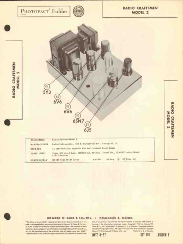 radio craftsmen model 2 audio amplifier 5 tube sams photofact manual