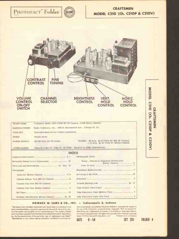 radio craftsmen model c210 television receiver sams photofact manual