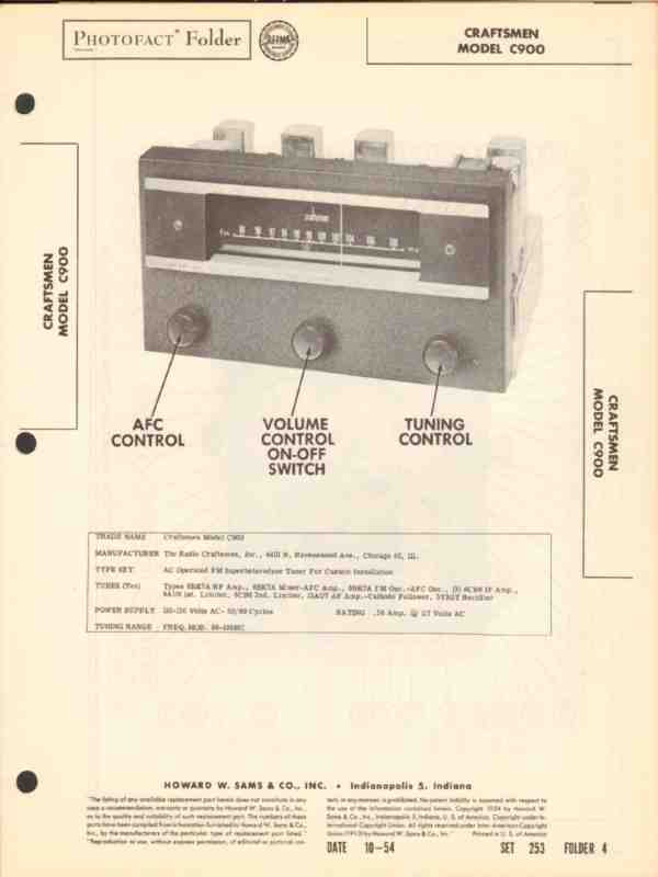 radio craftsmen model ct900 fm radio tuner sams photofact manual