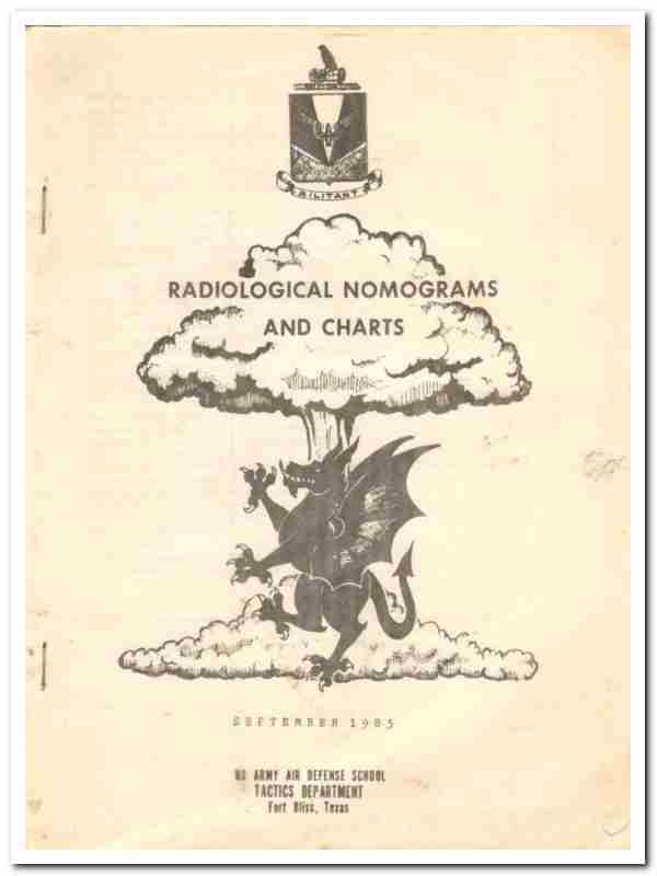 Soft cover manual titled RADIOLOGICAL NOMOGRAMS AND CHARTS September 1985 US Army Air Defense School, Tactics Department, Fort Bliss, Texas, 82 Page.
