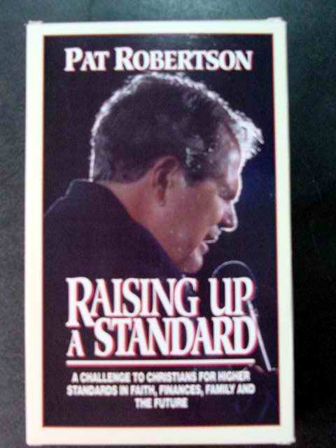 Video and audio tape program titled RAISING UP A STANDARD by Pat Robertson. One VHS and 2 cassette tapes. A Challenge to Christians for Higher Standard in Faith, Finances, Family and Future. 1993