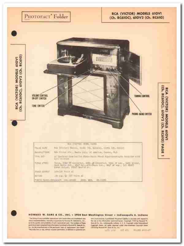 rca model 610v1 610v2 10-tube am fm radio phono sams photofact manual