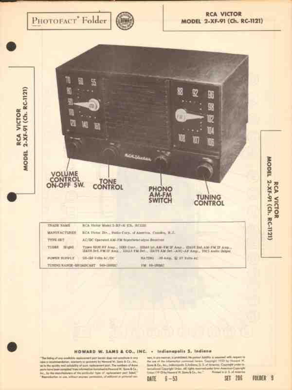 rca victor model 2-xf-91 am fm radio receiver sams photofact manual