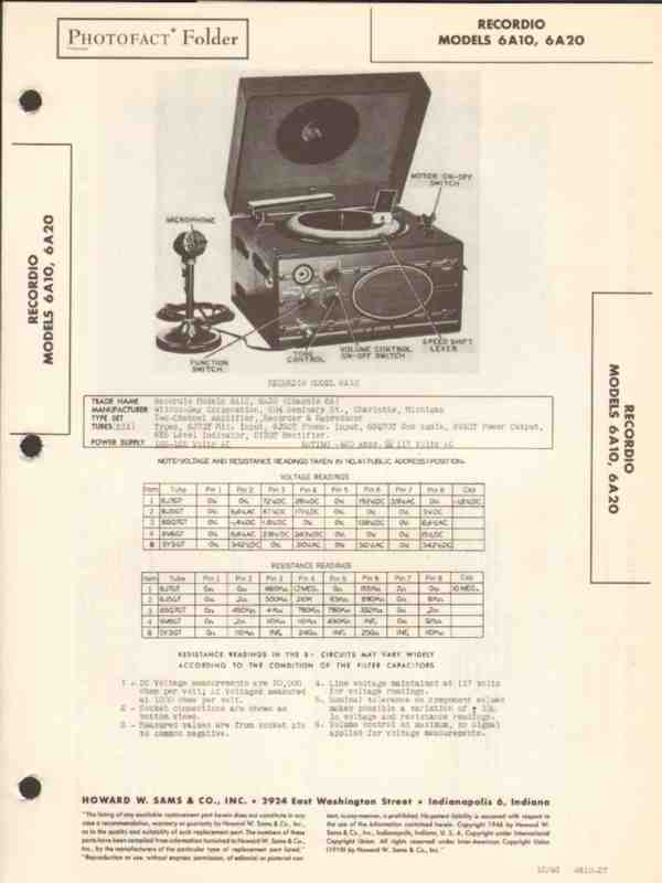 recordio model 6a10 6a20 amp recorder reproducer sams photofact manual