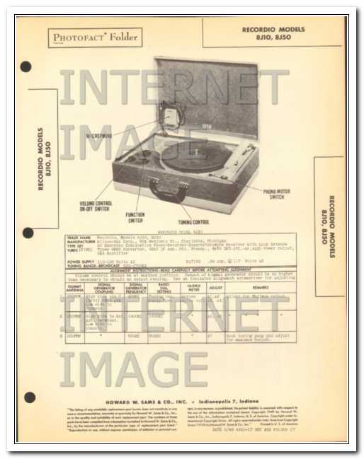 recordio models 8j10 8j50 phono recorder radio sams photofact manual