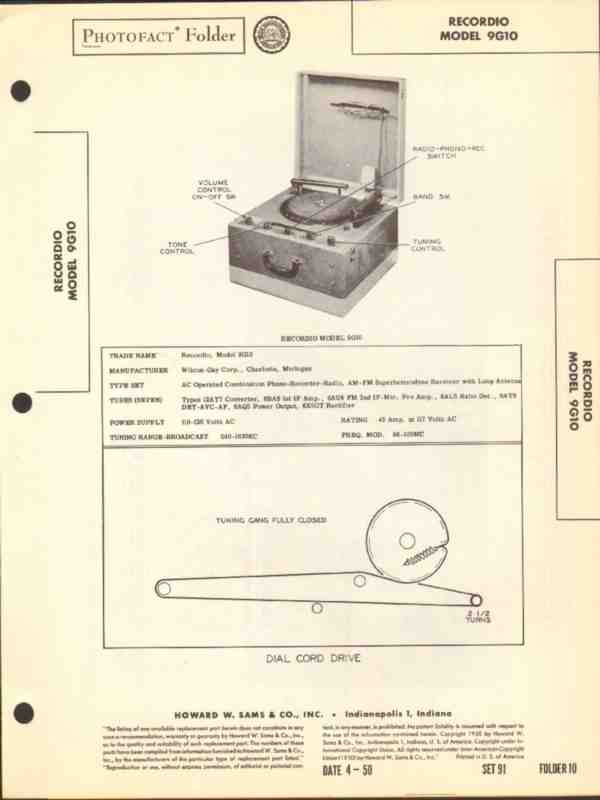 recordio models 9g10 7 tube phono recorder radio sams photofact manual