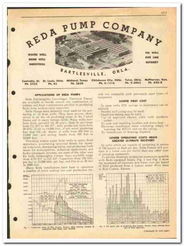 Original 1951 Oil and Gas trade vintage catalog for the REDA PUMP COMPANY. Main office and plant was located in Bartlesville, OK.