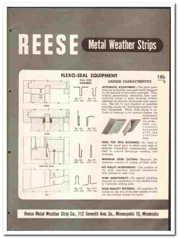 Manufacturers of Reese Metal Weather Strips. 'Flexo-Seal Equipment'.