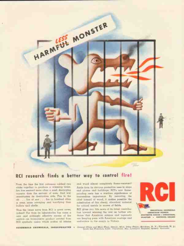 reichhhold chemicals inc 1943 harmless monster control fire vintage ad