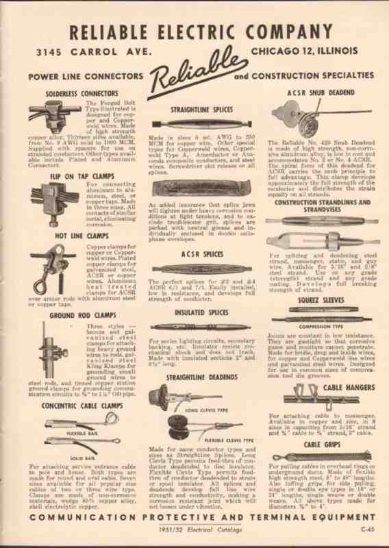 Reliable Electric Company 1949 Vintage Catalog Power Line Connectors