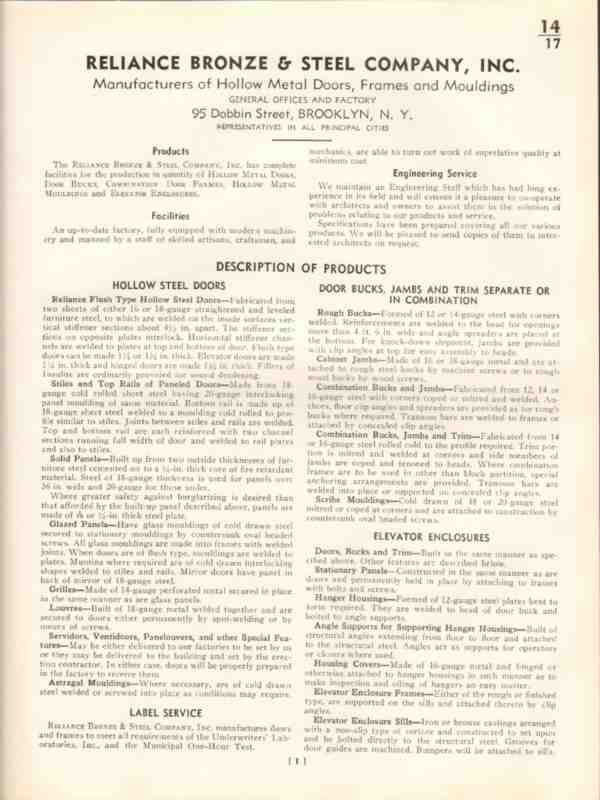 Reliance Bronze Steel Company 1938 Vintage Catalog Doors Hollow Metal