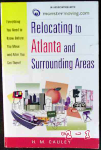Soft covered book titled RELOCATING TO ATLANTA AND SURROUNDING AREAS Everything You Need to Know Before You Move and After You Get There! by H.M. Cauley, in association with monstermoving.com, 2000, 365 pages.
