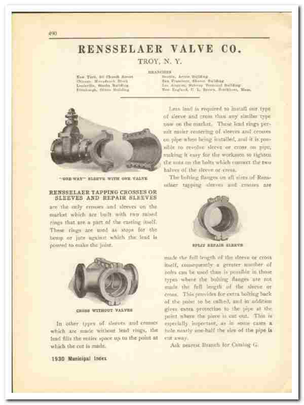 Original 1930 plumbing trade vintage catalog for the RENSSELAER VALVE COMPANY. Main office and plant was located in Troy, NY.