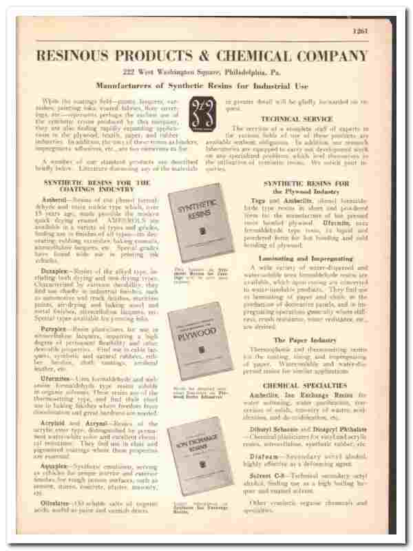 Resinous Products Chemical Company 1942 vintage catalog Resins