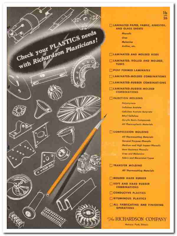 Richardson Company 1945 vintage plastic catalog laminated molded