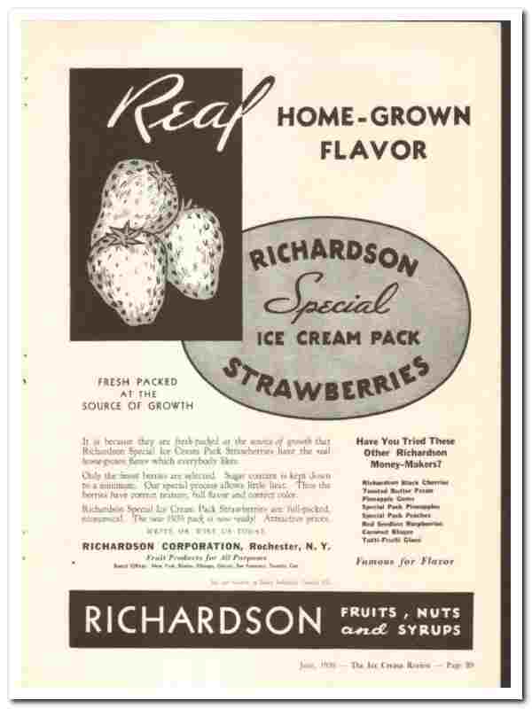 Richardson Corp 1933 vintage ice cream ad true flavor fruits nuts