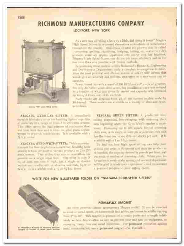 Richmond Mfg Company 1948 vintage industrial catalog Niagara sifter