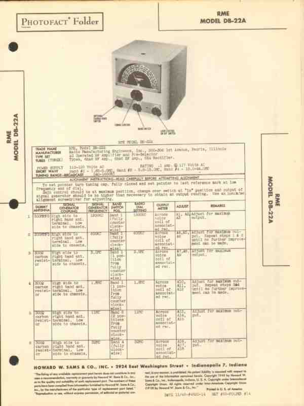 rme model db-22a rf amplifier and pre-selector sams photofact manual