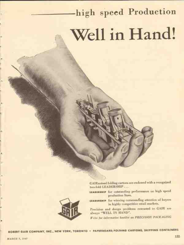 robert gair company 1947 high speed production cartons vintage ad