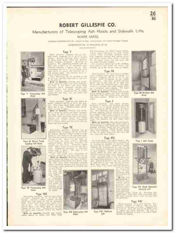 Robert Gillespie Company 1935 vintage elevator catalog ash hoist lift