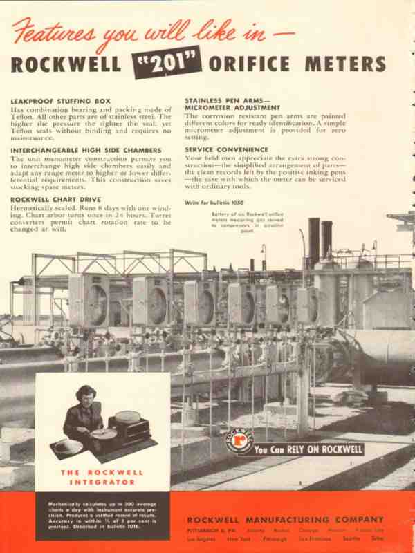 rockwell mfg company 1953 features 201 orifice meters vintage ad
