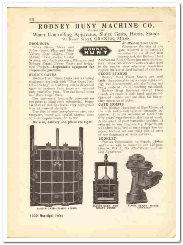 Rodney Hunt Machine Company 1930 vintage road catalog sluice gates