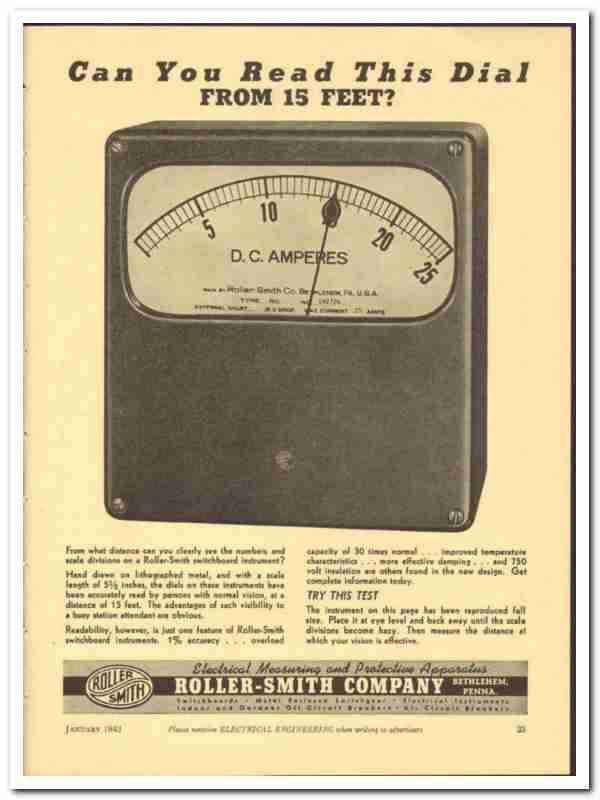 Roller-Smith Company 1943 vintage electrical ad instrument read dial