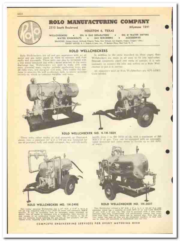 Original 1951 Oil and Gas trade vintage catalog for the ROLO MANUFACTURING COMPANY. Main office and plant was located at 2510 South Boulevard, Houston, TX.