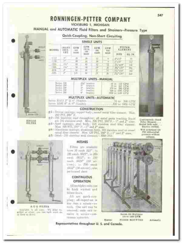 Ronningen-Petter Company 1960 vintage industrial catalog fluid filters