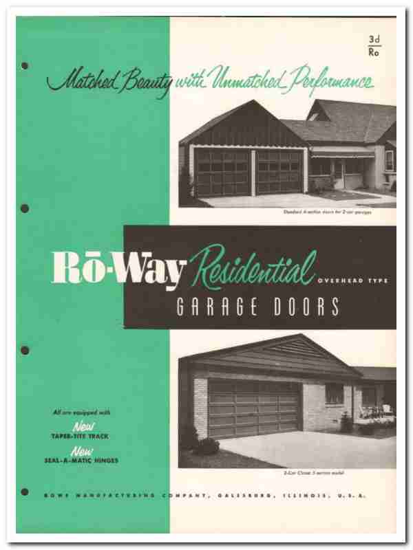 Rowe Mfg Company 1954 Vintage Catalog Doors Ro-Way Residential Garage