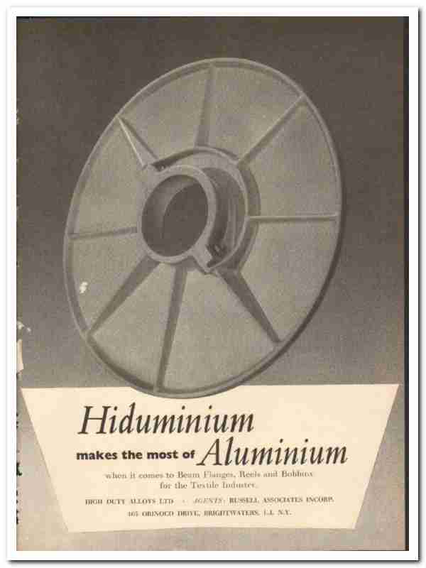 Russell Associates Inc 1954 vintage textile ad Hiduminium Aluminium