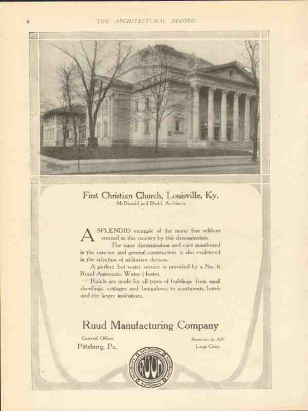 ruud mfg company 1912 first christian church louisville ky vintage ad