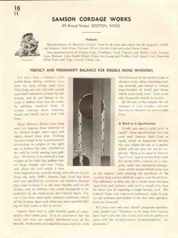 Samson Cordage Works 1946 vintage hardware catalog Spot sash cord