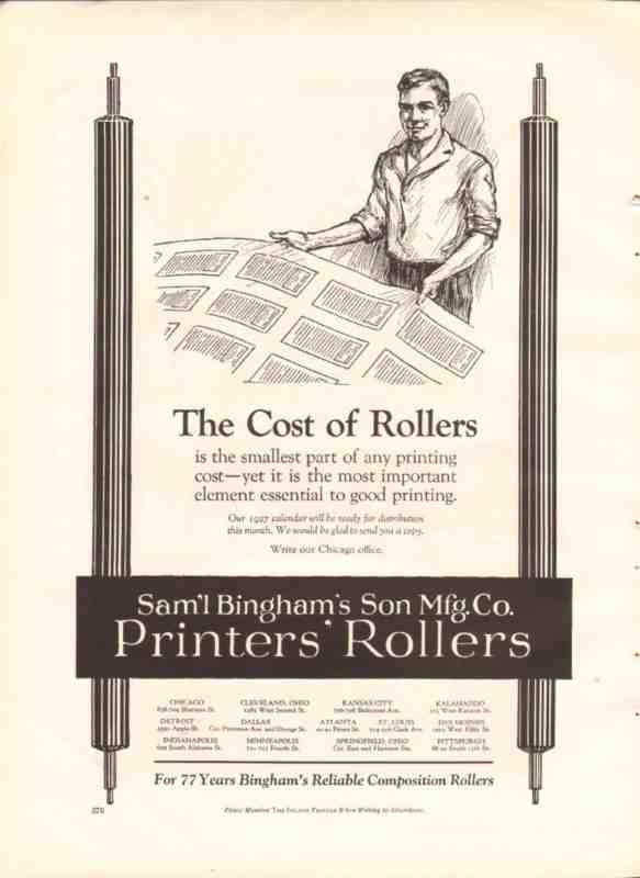 samuel bingham son mfg company 1926 cost printers rollers vintage ad